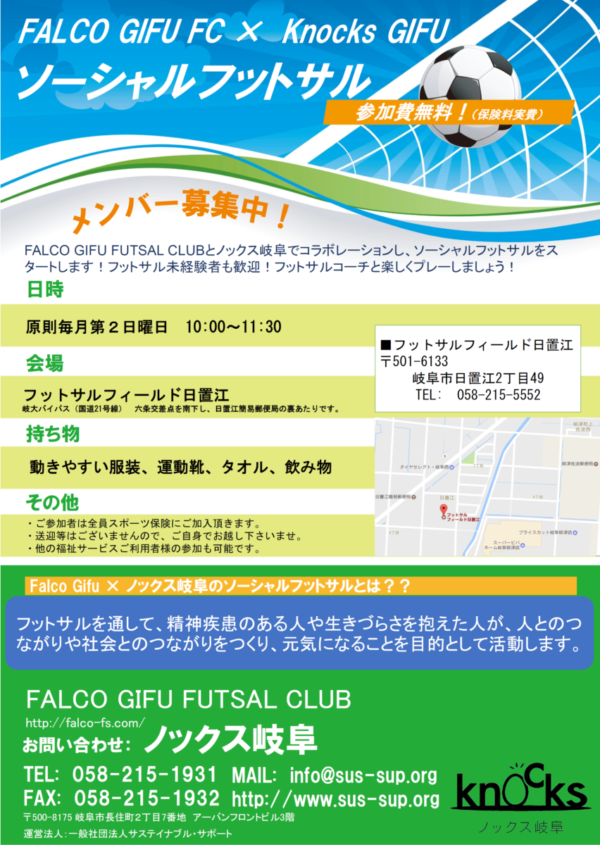※ノックス岐阜のソーシャルフットサルはFALCO GIFU FUTSAL CLUBの協力で運営をしております。