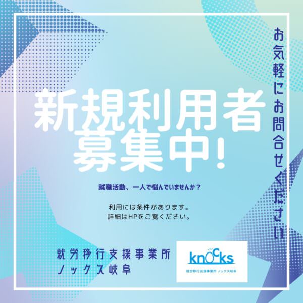 そこで、ノックス岐阜では新規利用者を募集しております!