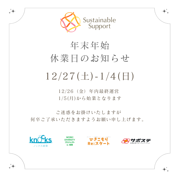 年末年始休業日のお知らせ